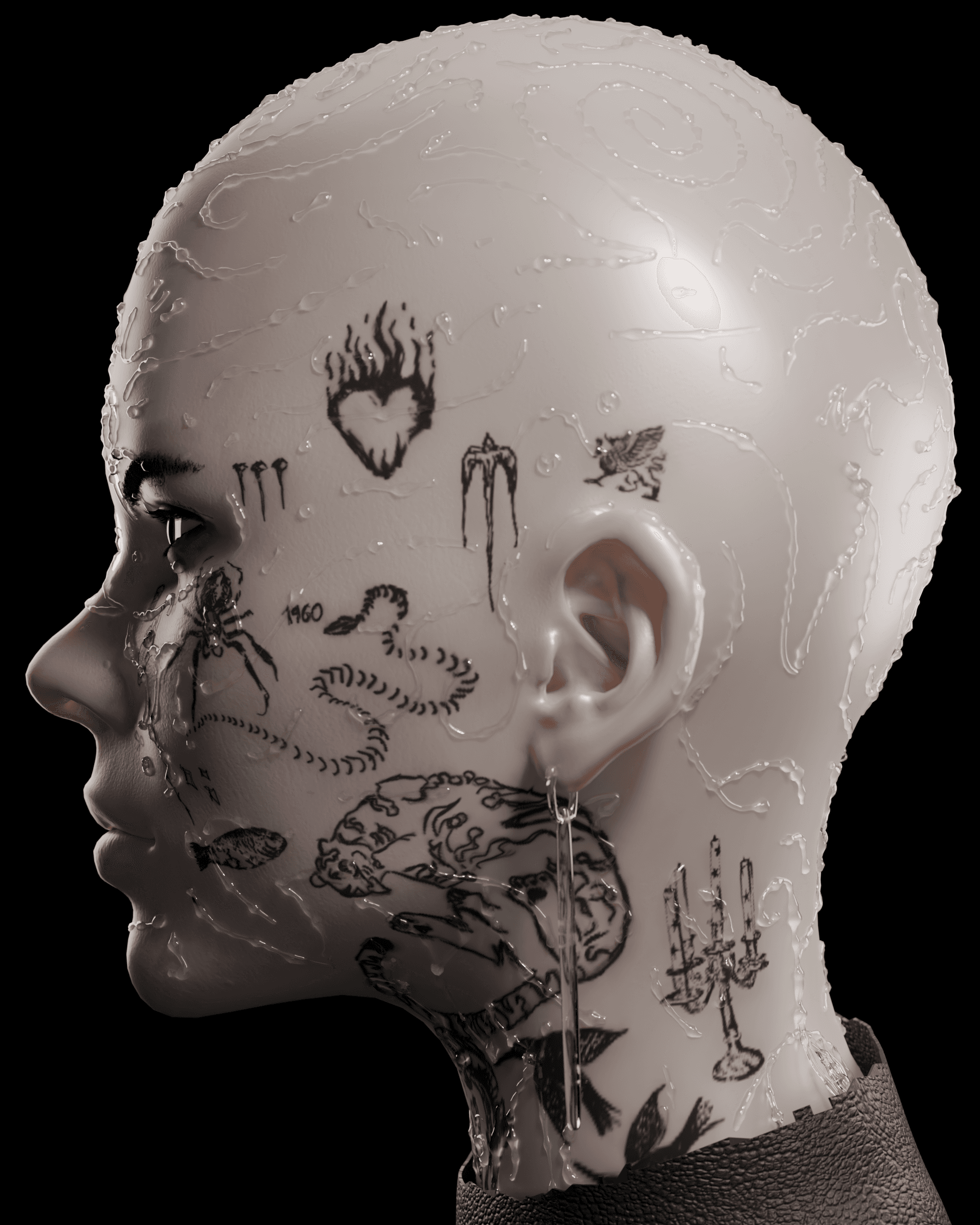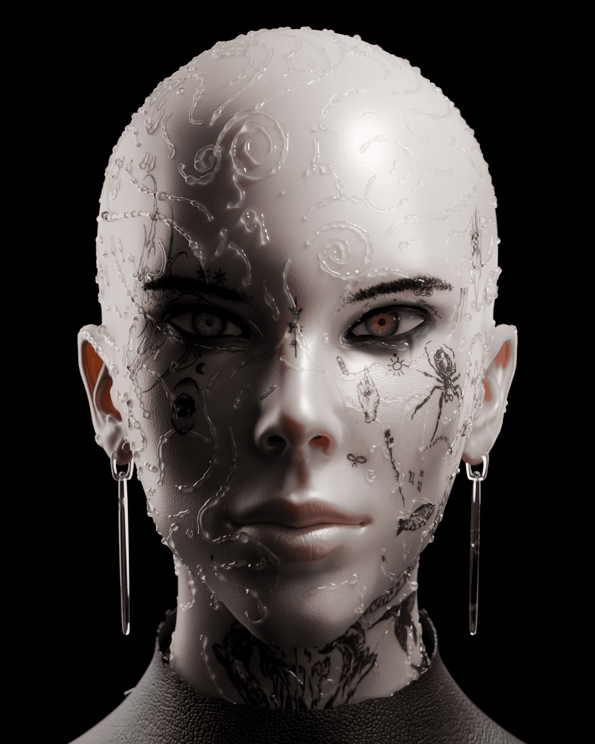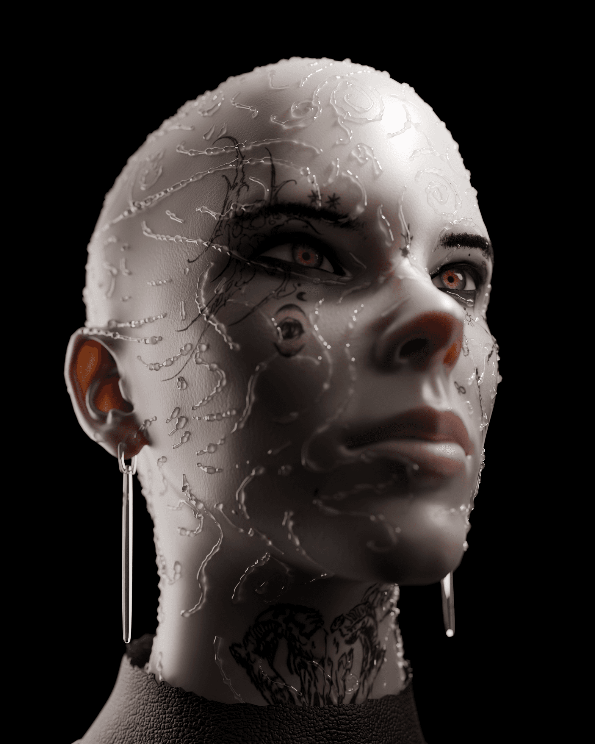 sculpted the face and details in zbrush, made the textures and tattoos substance painter. everything else done on blender